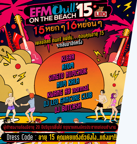 ไทยประกันชีวิต ขอมอบบรรยากาศการฟังเพลงสุดพิเศษ ให้กับคนที่ชอบฟังเพลงแบบคุณ ด้วยบัตรงาน EFM Chill On The Beach 15 พร้อมห้องพัก
